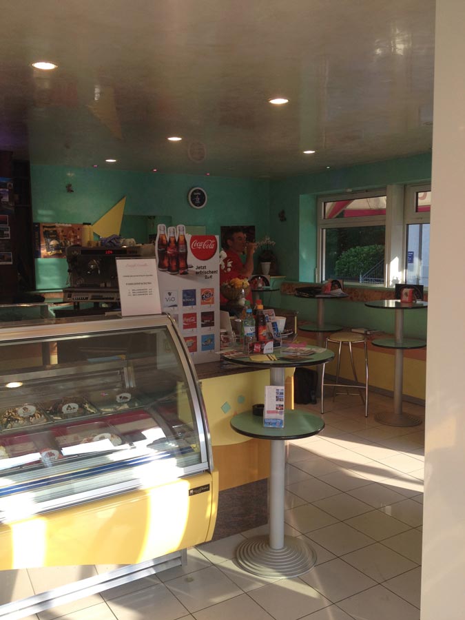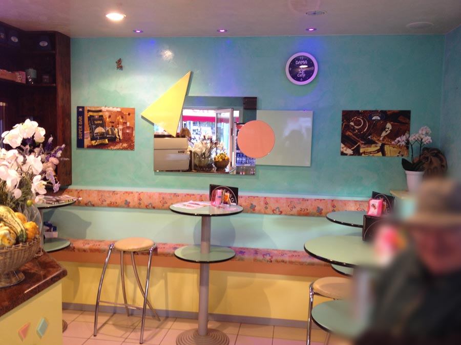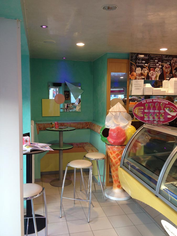 La gelateria, come vedi dalle foto, aveva uno stile un po’ vecchiotto e con colori in disuso da parecchi anni.