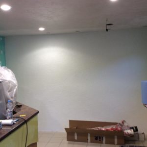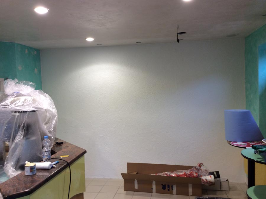 Con la vernice è stato coperto il vecchio colore “verdolino” e con il wrapping è stata fatta la personalizzazione delle pareti.