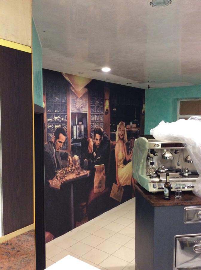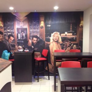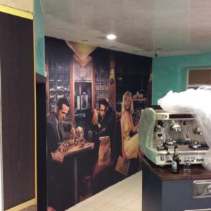 Il lavoro è stato realizzato da Yuri Meneghetti, Applicatore Specializzato 3M MondoDecor, in cui è stata data molta importanza alla decorazione murale con carta da parati progettatata e realizzata in linea con lo stile del locale.