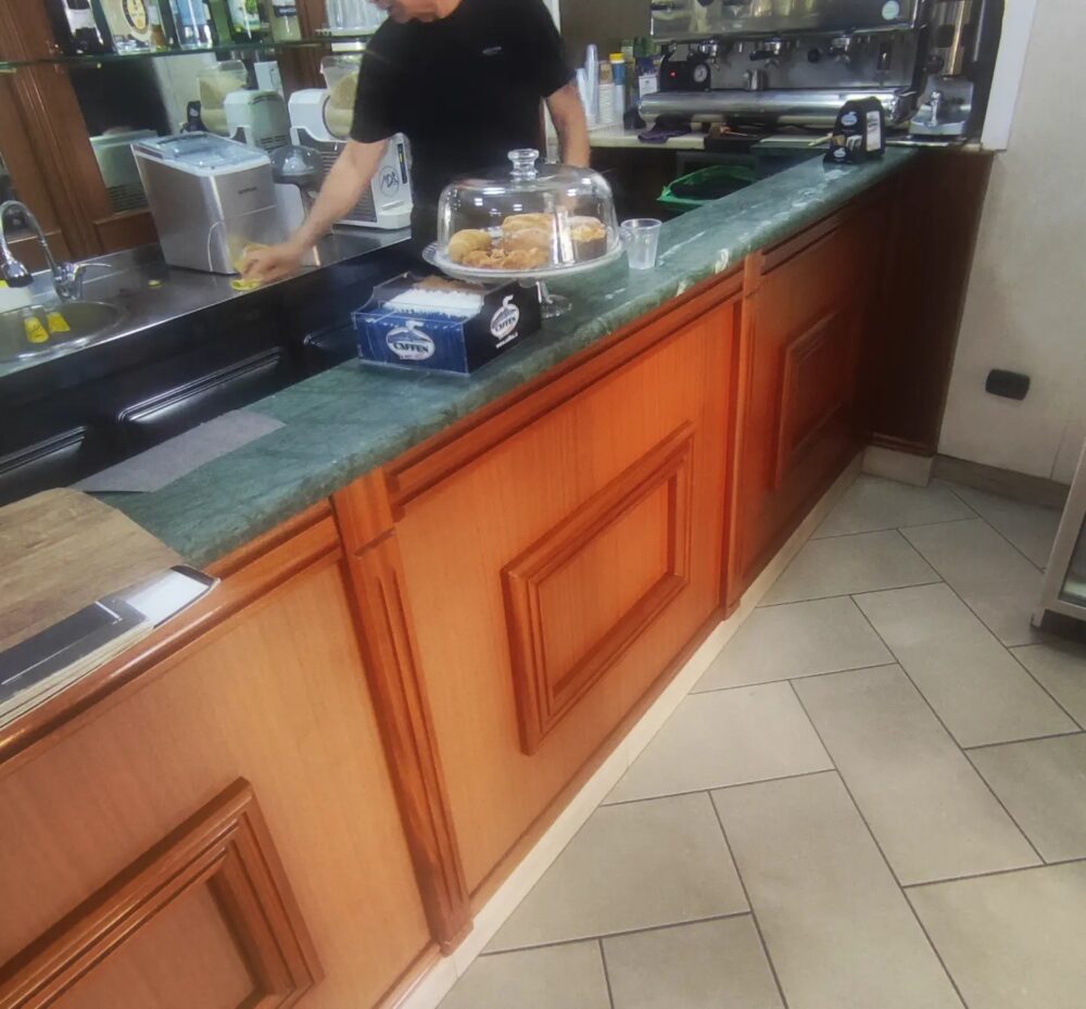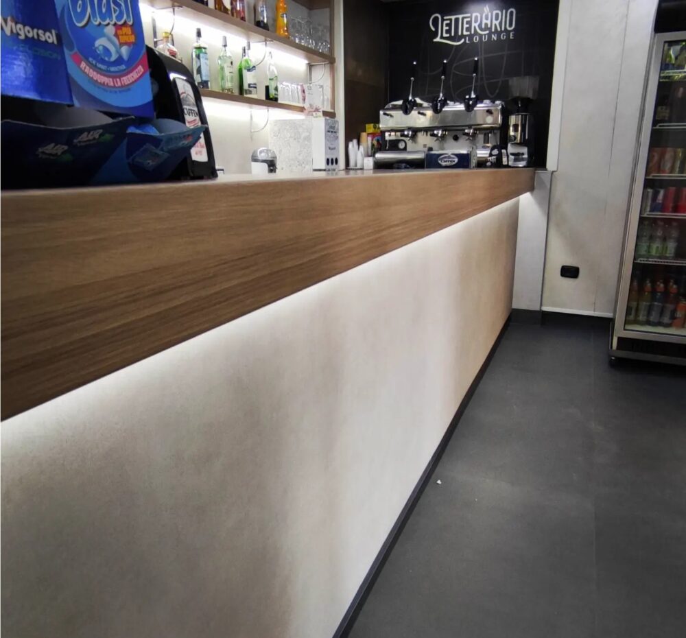 Aumentando il piano di appoggio e installando una striscia di luci a LED lungo tutta la sua lunghezza, il bancone ora emana un’eleganza moderna che attira l’attenzione dei clienti.