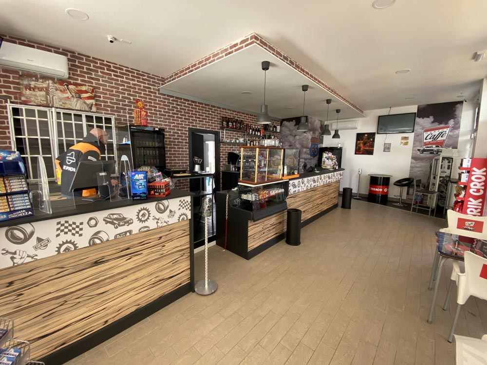 Grazie alla tecnica del wrapping, alla fantasia e allo staff di Riccardo è stato possibile raggiungere un risultato che ha superato ogni aspettativa ed ha portato alla nascita del Bar Garage Caffè, in cui è facile lasciarsi travolgere dall’atmosfera e dove non manca una gradevole nota vintage.